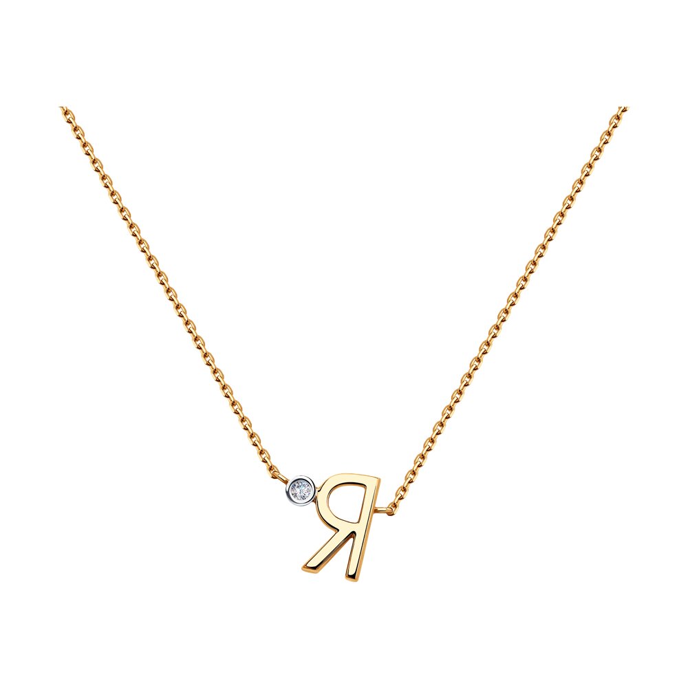Колье из красного золота с искусственно выращенным бриллиантом 077506