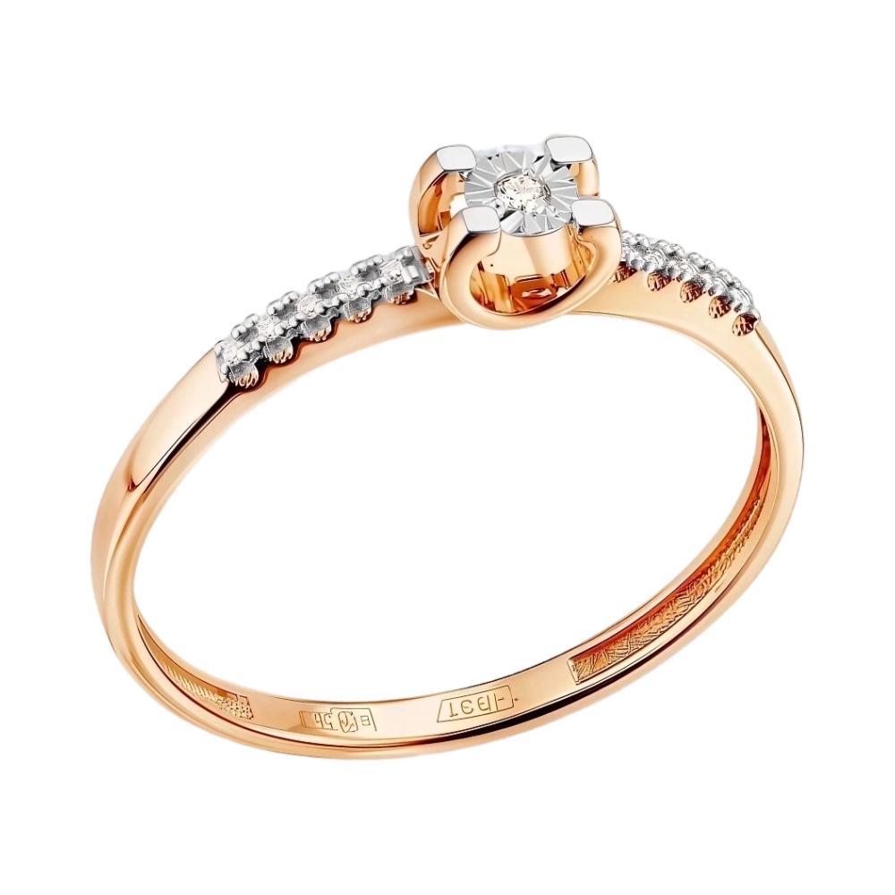Кольцо помолвочное из красного золота с бриллиантами 083398