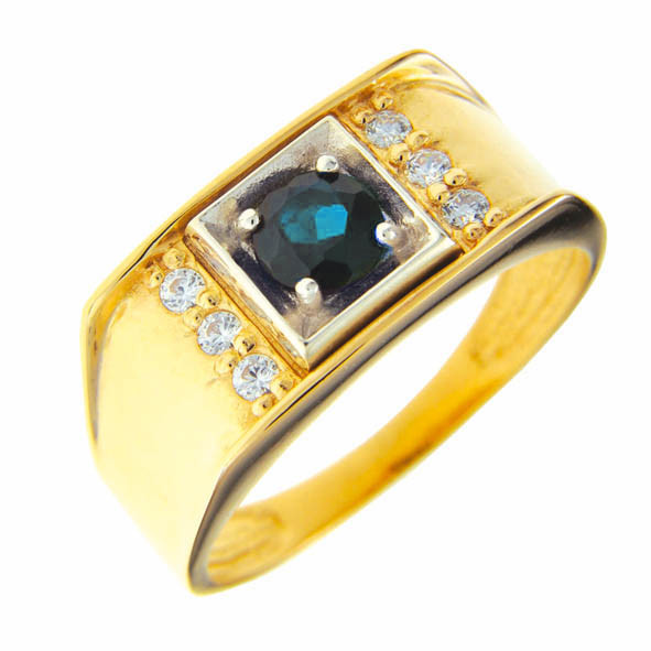 Печатка мужская из комбинированного золота с сапфиром и бриллиантами 083551