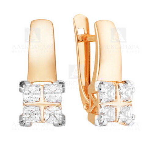 Серьги из красного золота с фианитами 084202