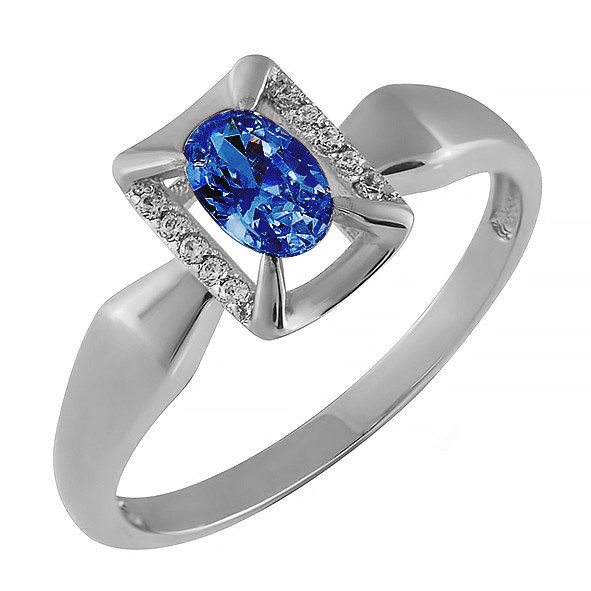Кольцо из белого золота с сапфиром и бриллиантами 084893