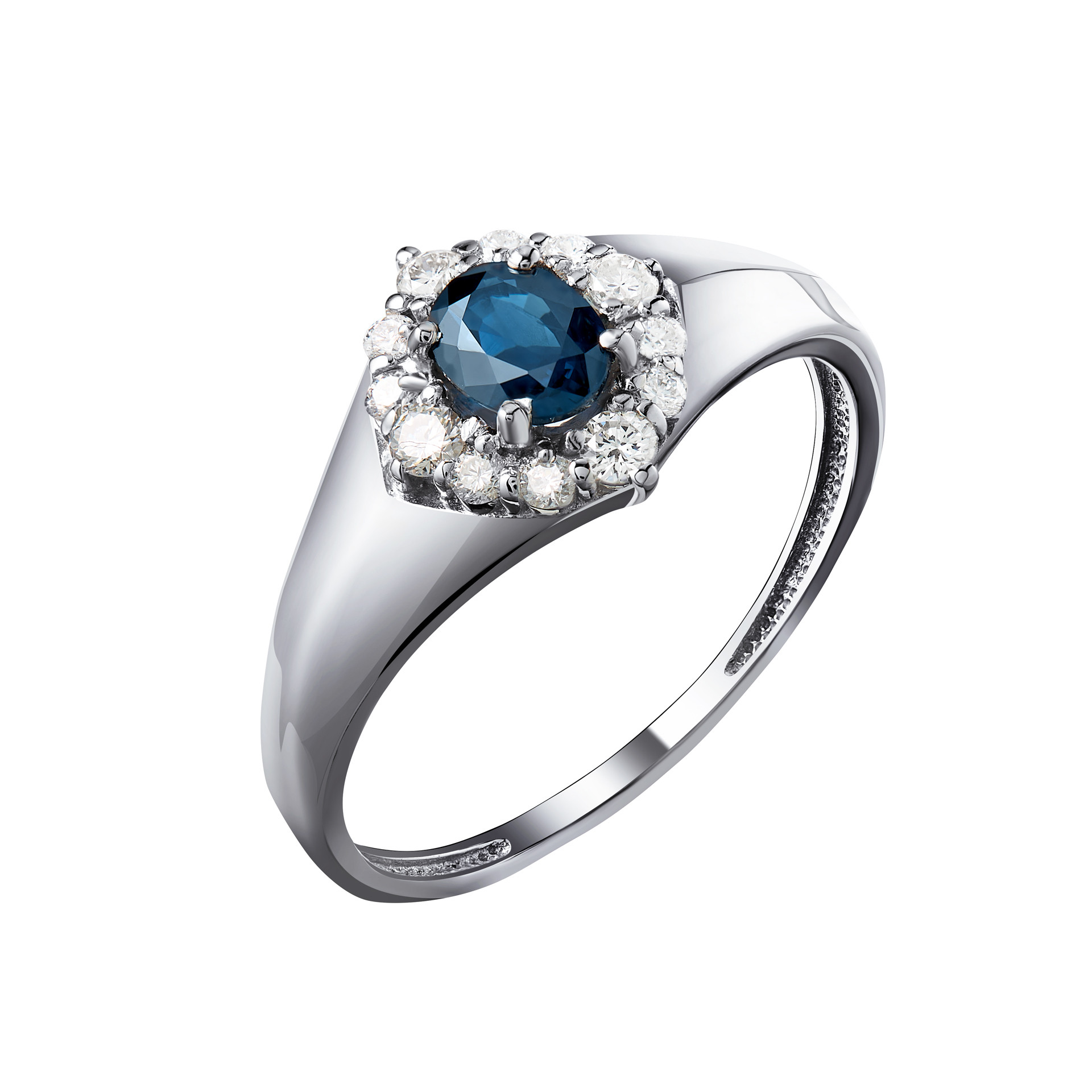Кольцо из белого золота с сапфиром и бриллиантами