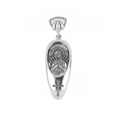 "Подвеска с образом Семистрельной иконы Божьей Матери. Ее форма напоминает пулю, символизируя защиту и силу. Семистрельная икона Божьей Матери известна своей защитной силой и помощью в трудные моменты. Позвольте этой подвеске быть вашим символом защиты и поддержки в повседневной жизни."