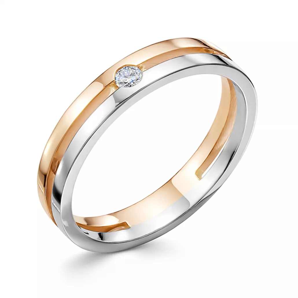 Обручальное кольцо из комбинированного золота с бриллиантами 093436