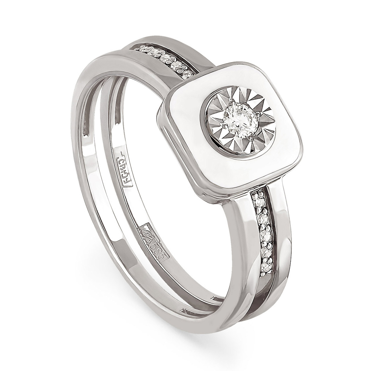 Кольцо из белого золота с бриллиантами и эмалью 094795