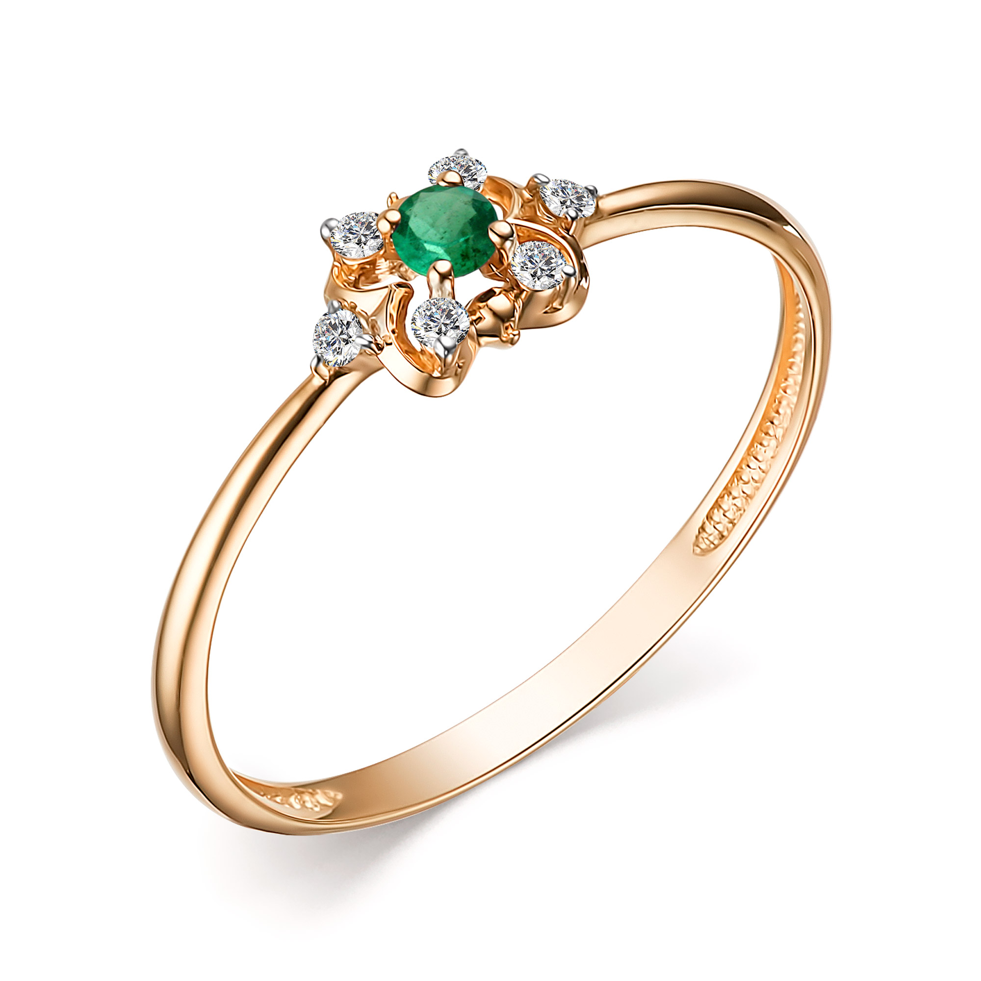 Кольцо из красного золота с изумрудом и бриллиантами 095003