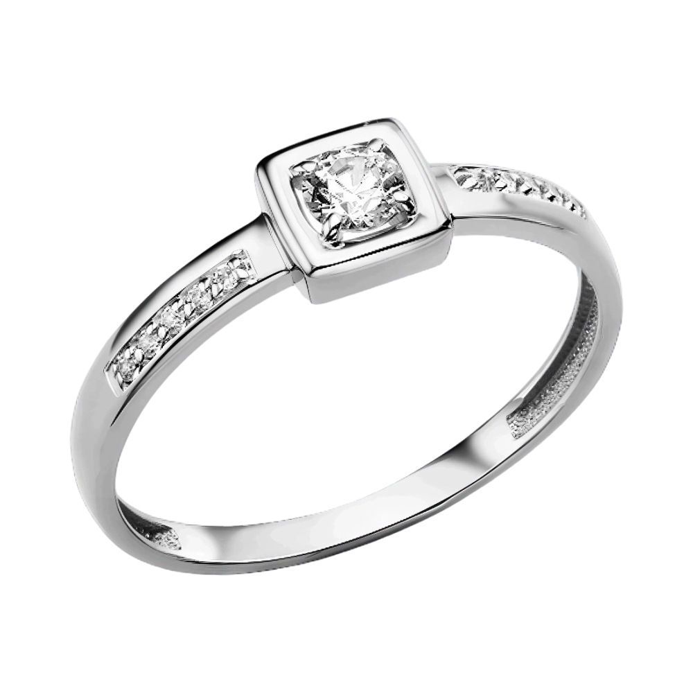 Кольцо помолвочное из белого золота с фианитами 097835