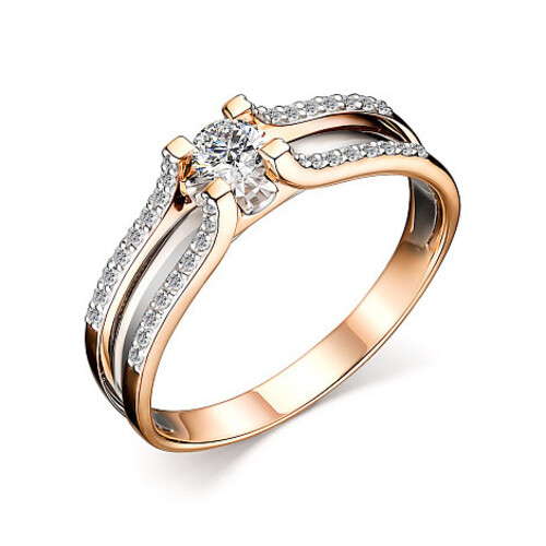 Кольцо помолвочное из красного золота с бриллиантами 098019