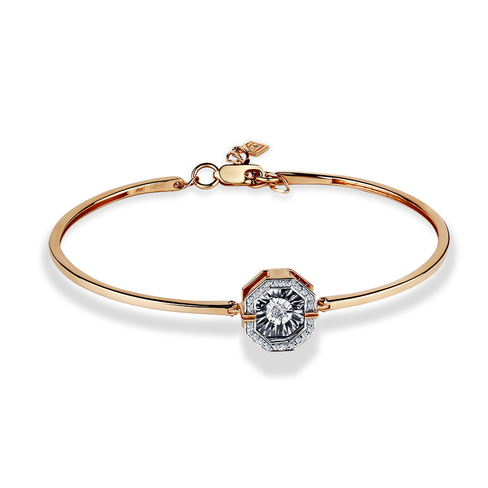Браслет жёсткий из красного золота с бриллиантами 098784