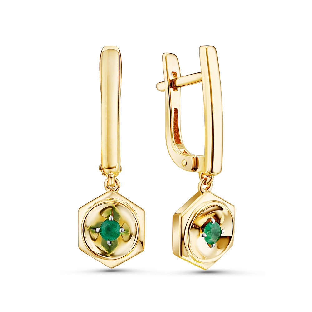 Серьги из жёлтого золота с изумрудами 098801
