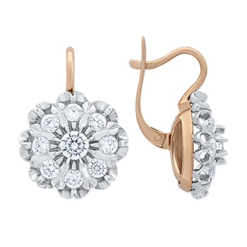 Серьги из комбинированного золота с фианитами