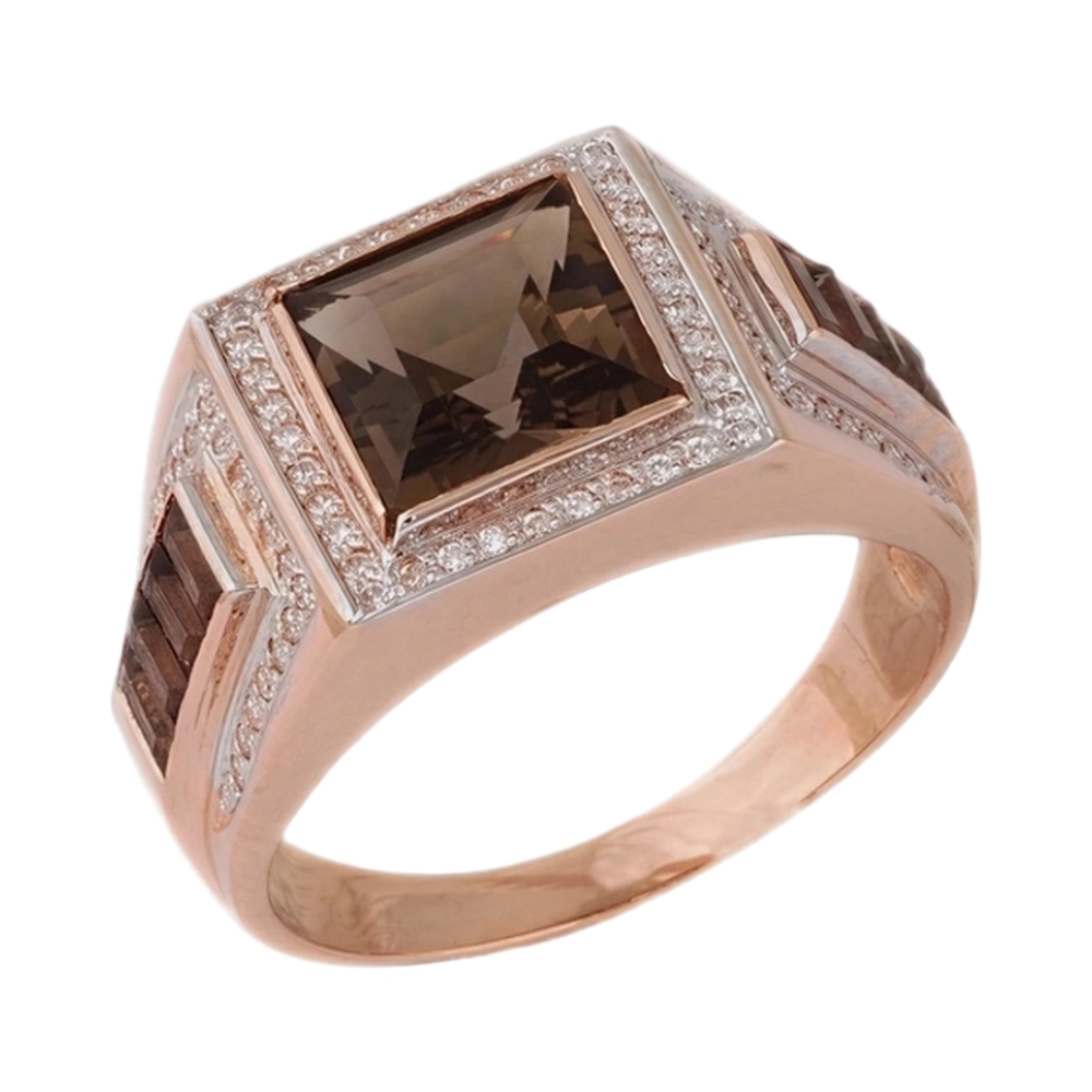 Печатка мужская из серебра с дымчатым кварцем и фианитами 103006