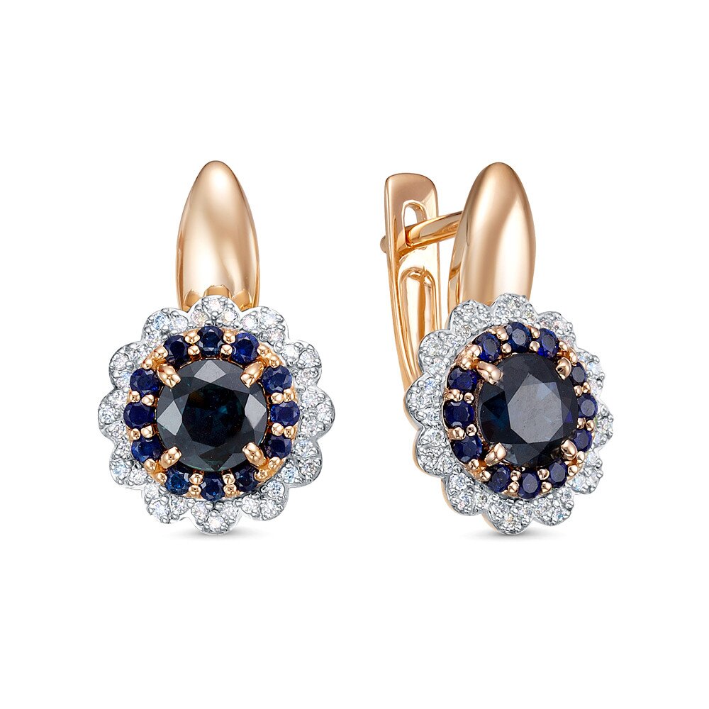 Серьги из красного золота с сапфирами и бриллиантами 108838