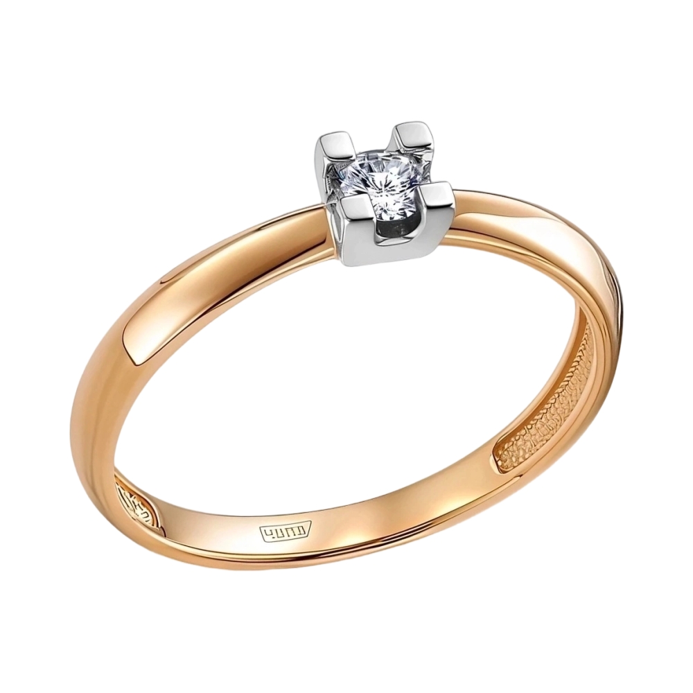 Кольцо помолвочное из красного золота с бриллиантом