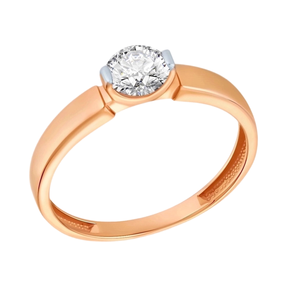 Кольцо помолвочное из красного золота с фианитом