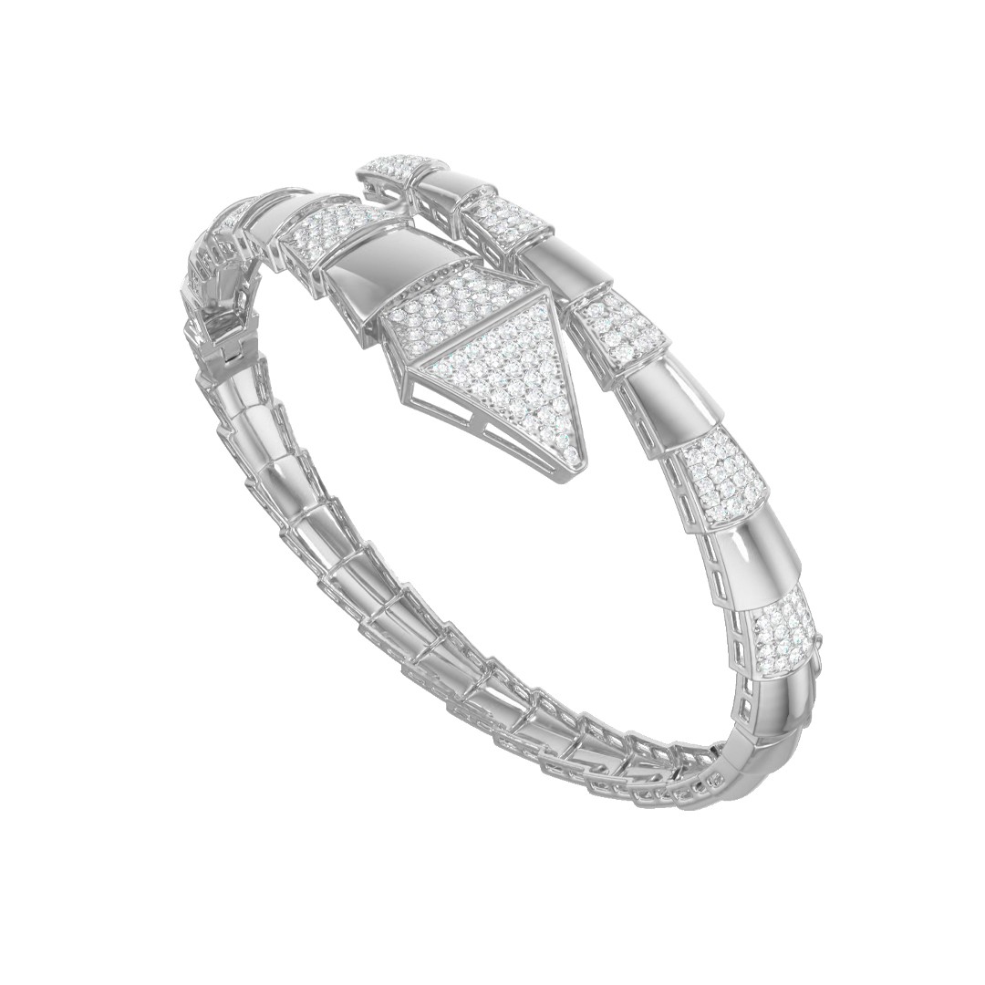 Браслет жёсткий из белого золота с фианитами