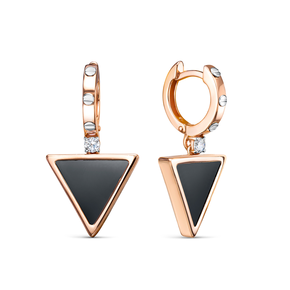 Серьги из красного золота с ониксом и фианитами