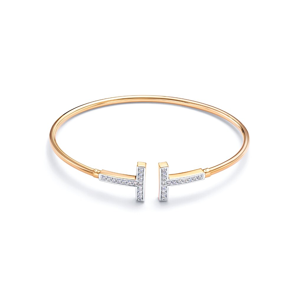 Браслет жёсткий из жёлтого золота с фианитами 122715