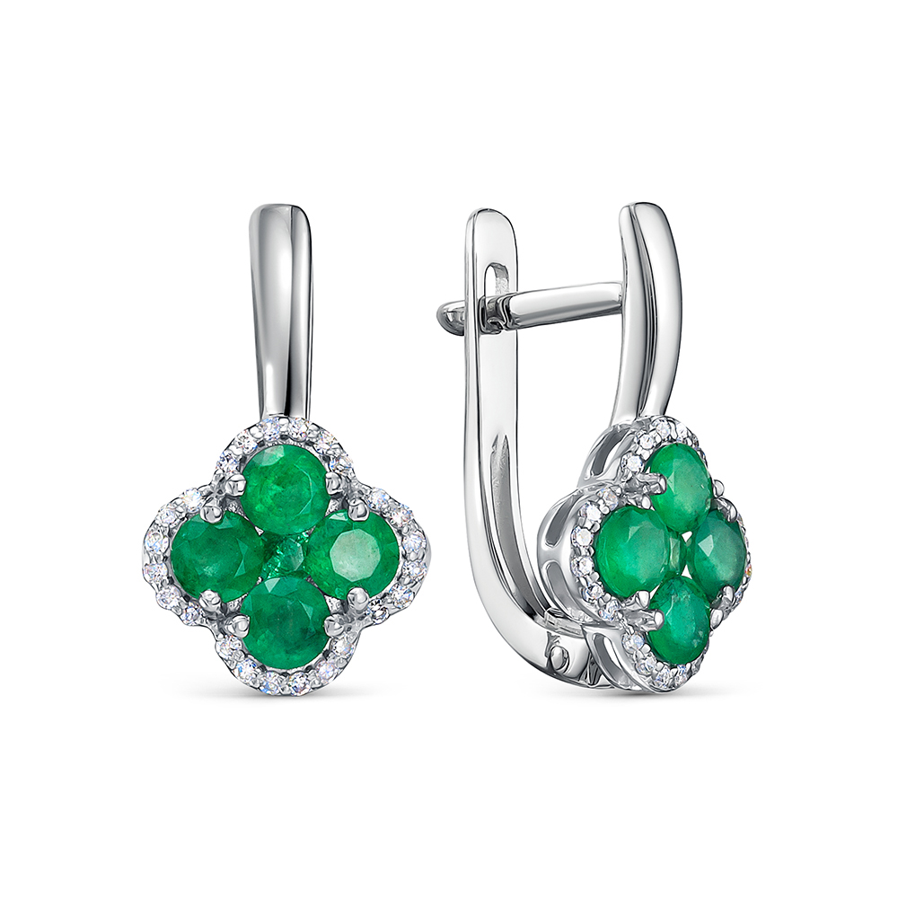 Серьги из белого золота с изумрудами и бриллиантами 122934