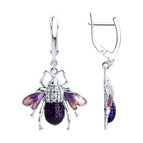 Серьги из серебра с фианитами и эмаоью 123921