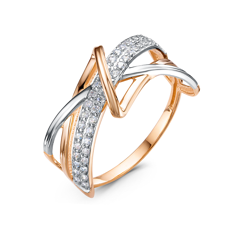 Кольцо из красного золота с фианитами 124914
