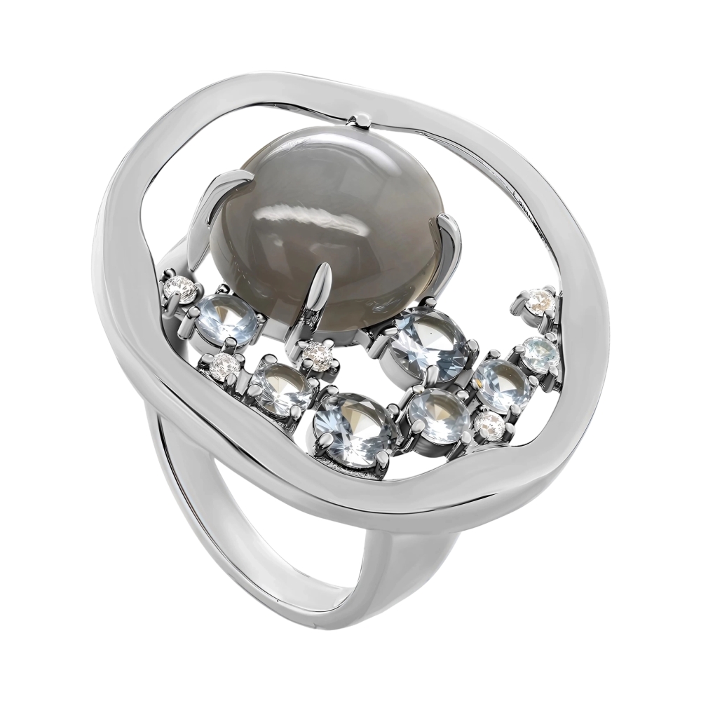 Кольцо из серебра с лунным камнем и фианитами 125274
