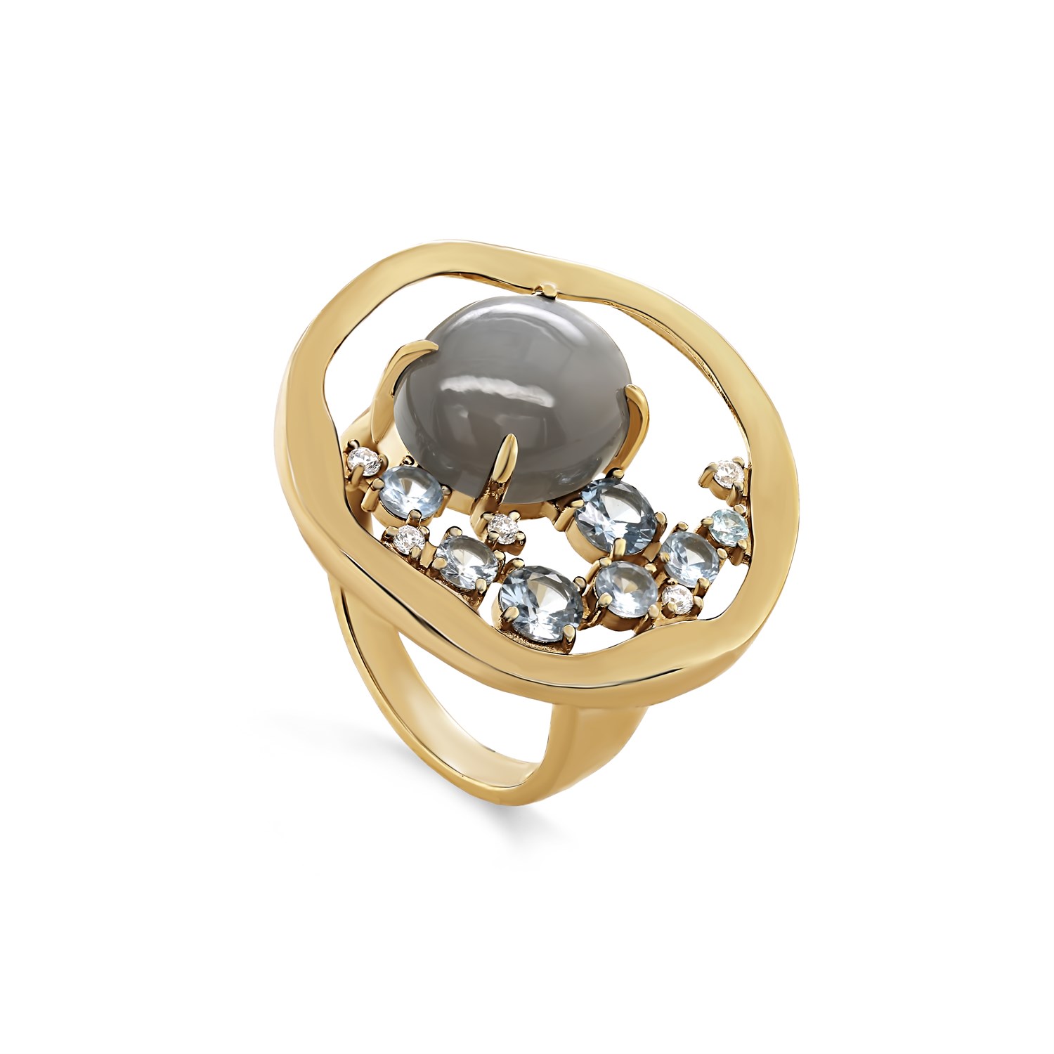 [NAME] => Кольцо из серебра с лунным камнем и фианитами