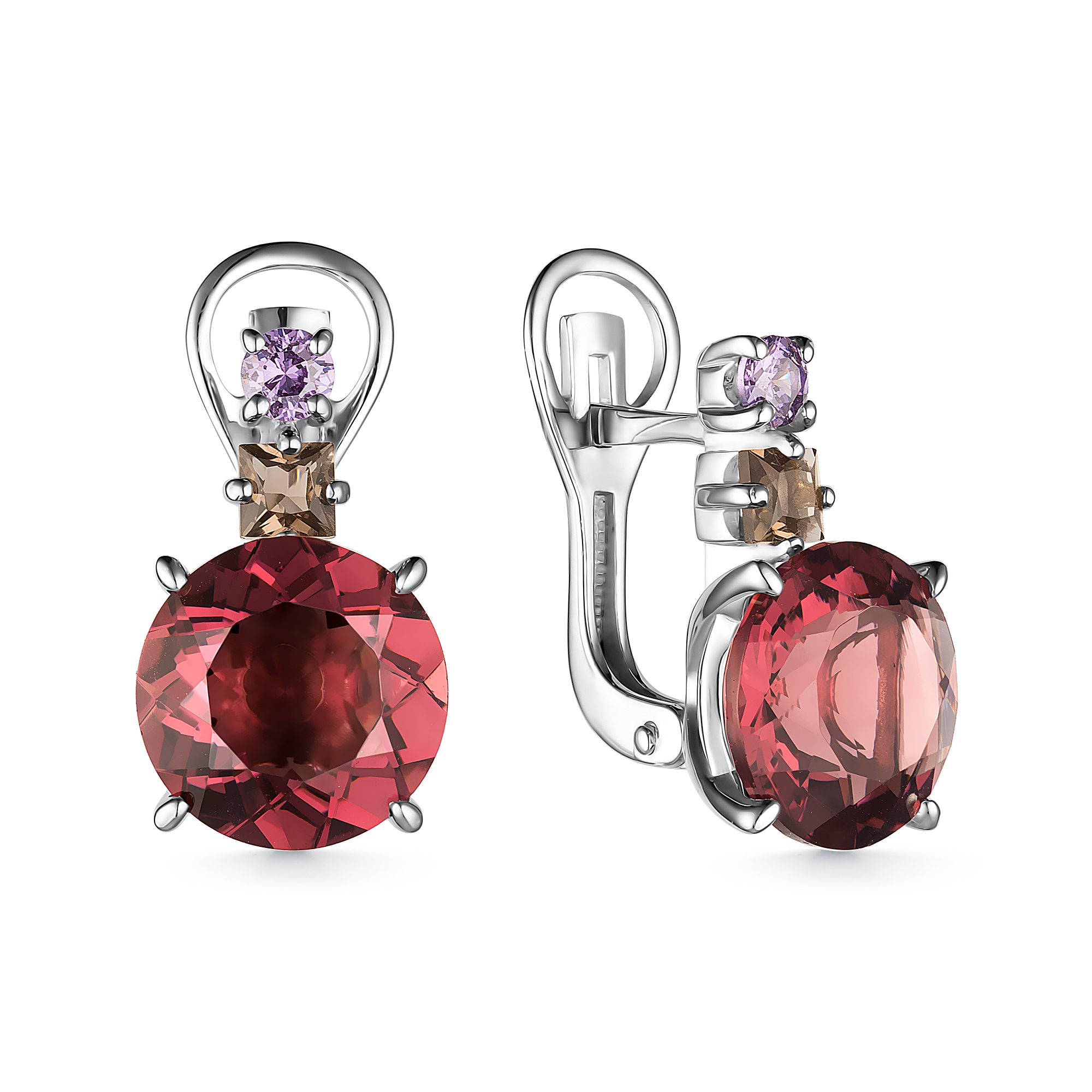 [NAME] => Серьги из серебра с кристалом родолита и фианитами