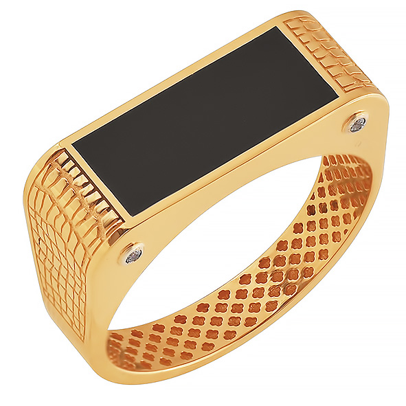 Печатка мужская из красного золота с агатом и фианитами 125865