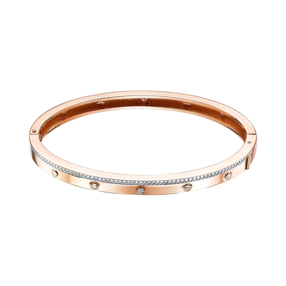 Браслет жёсткий из красного золота с фианитами 125946