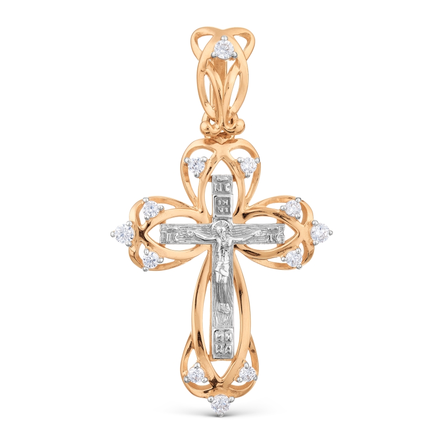 Крест из красного золота с фианитами 126103