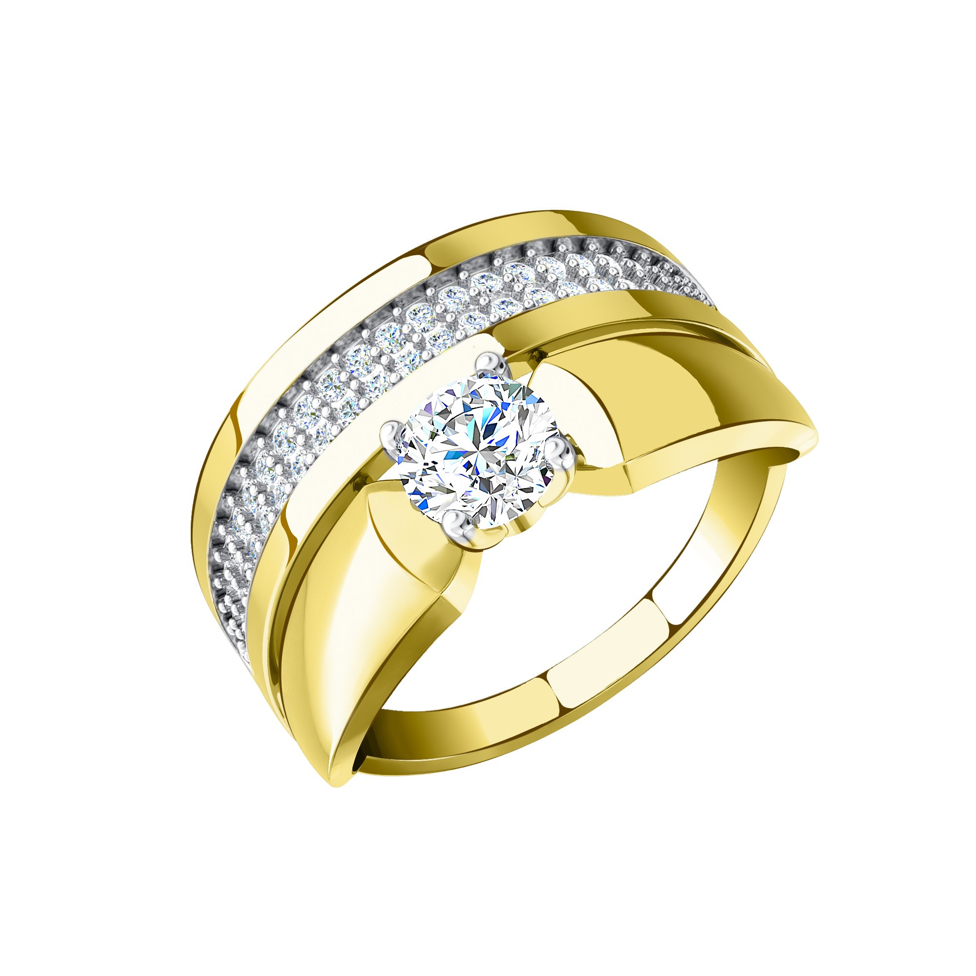 Кольцо из желтого золота с фианитами