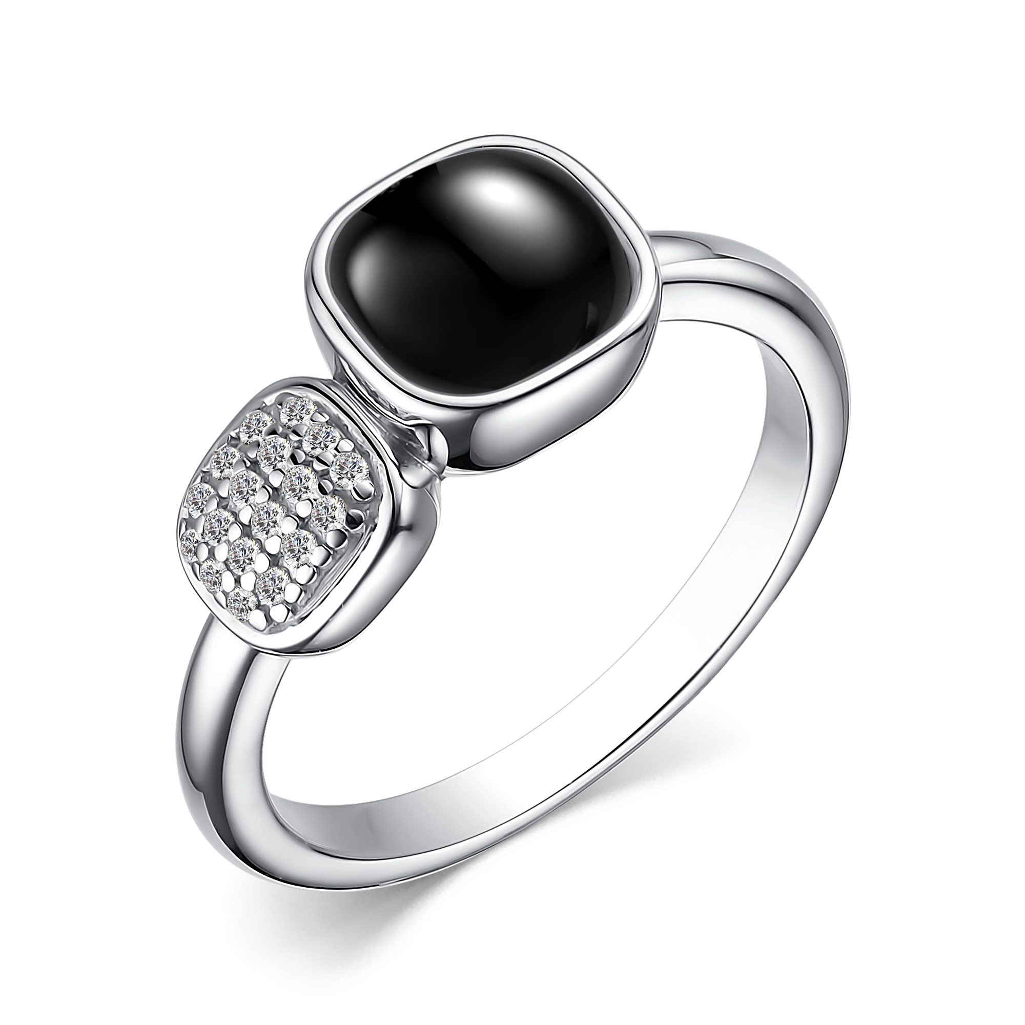 [NAME] => Кольцо в серебре с черным ониксом и фианитом