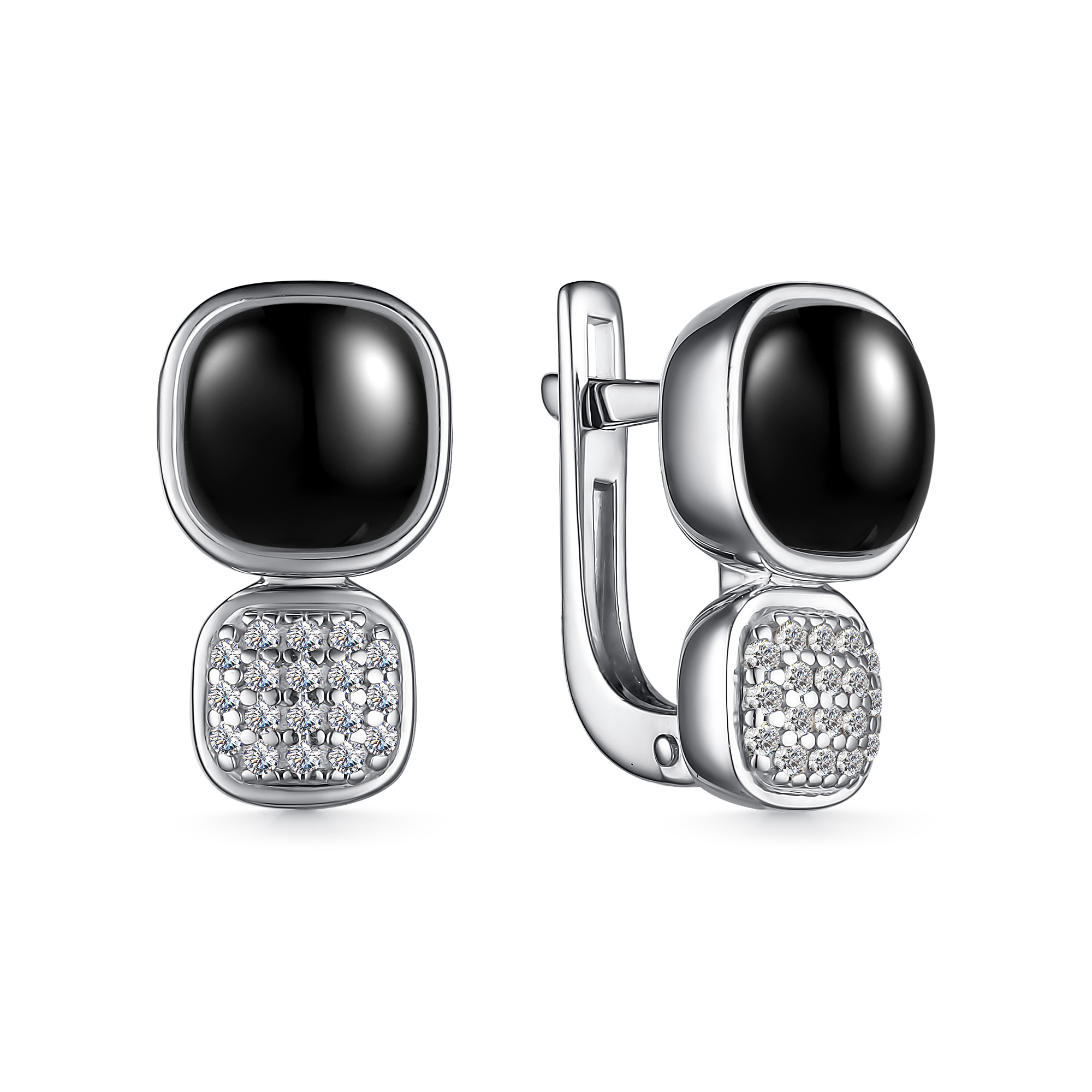 [NAME] => Серьги из серебра с черным ониксом и фианитами