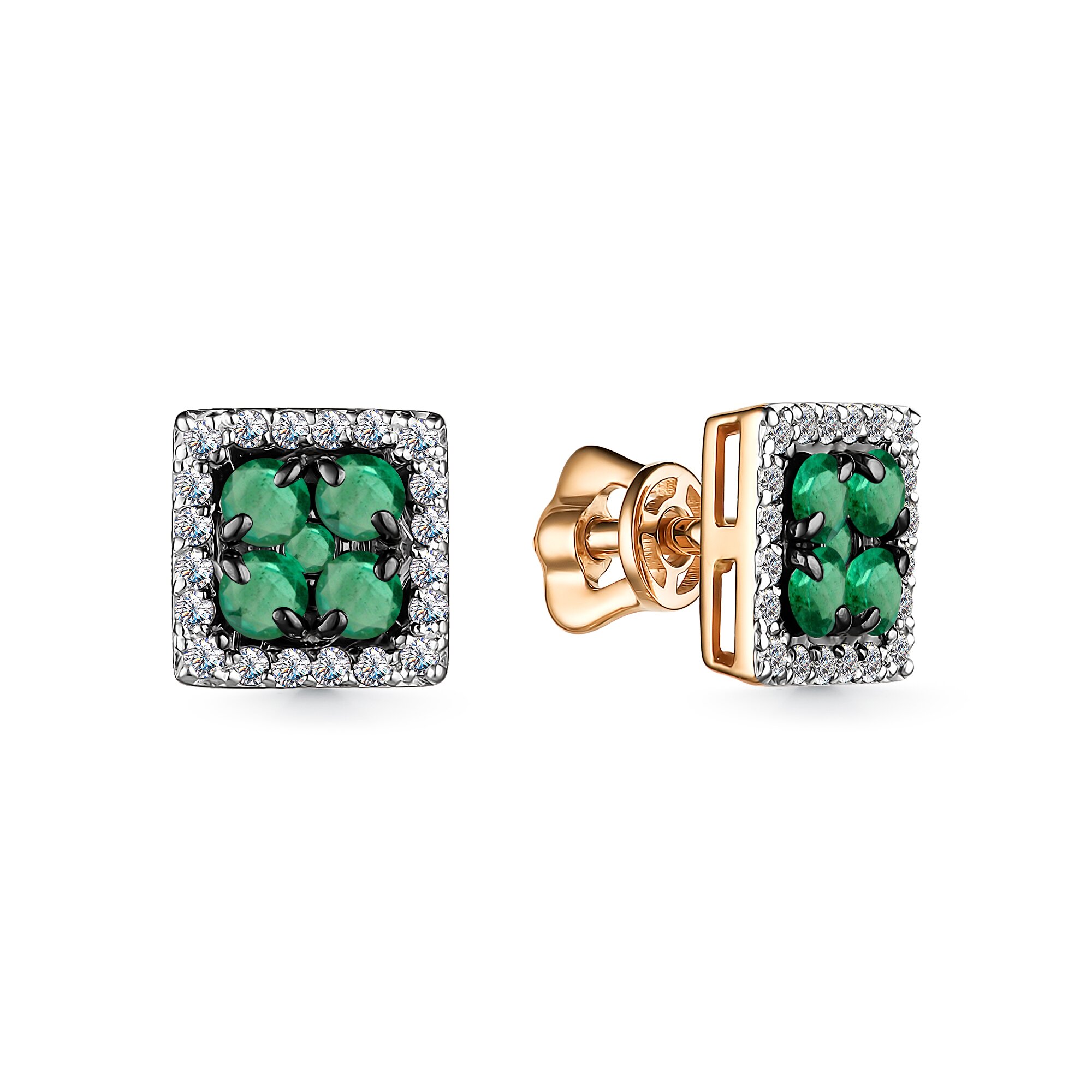 Серьги из красного золота с изумрудами и бриллиантами 127102