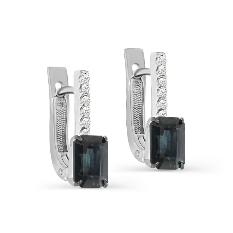 Серьги из белого золота с бриллиантами и сапфирами