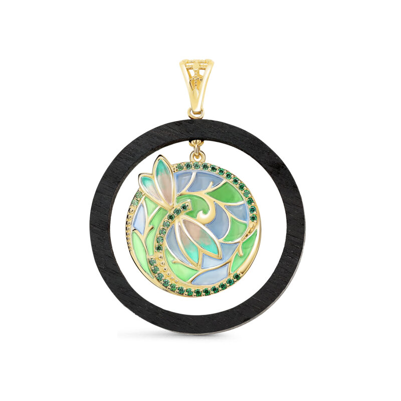 Подвеска из серебра с фианитами и граб.деревом 127551