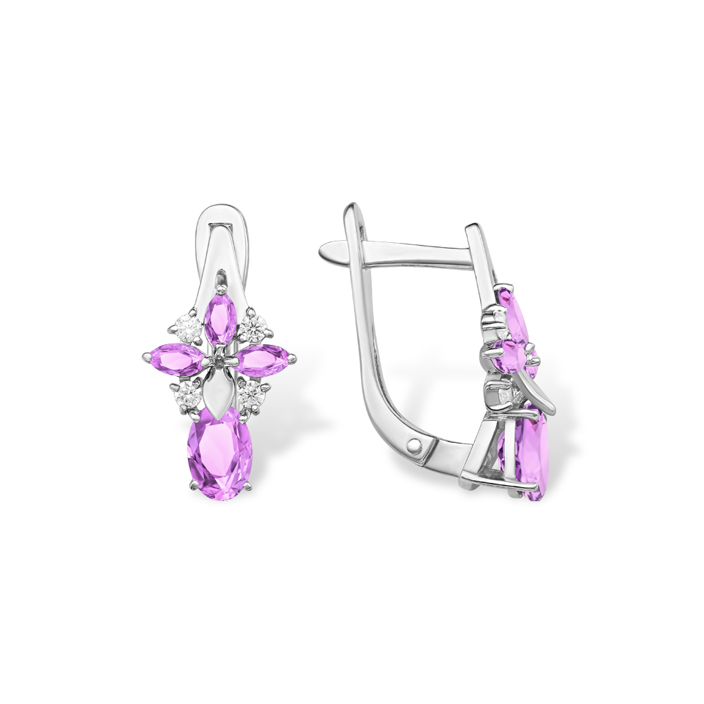Серьги из серебра с аметистамиом и фианитами 127866