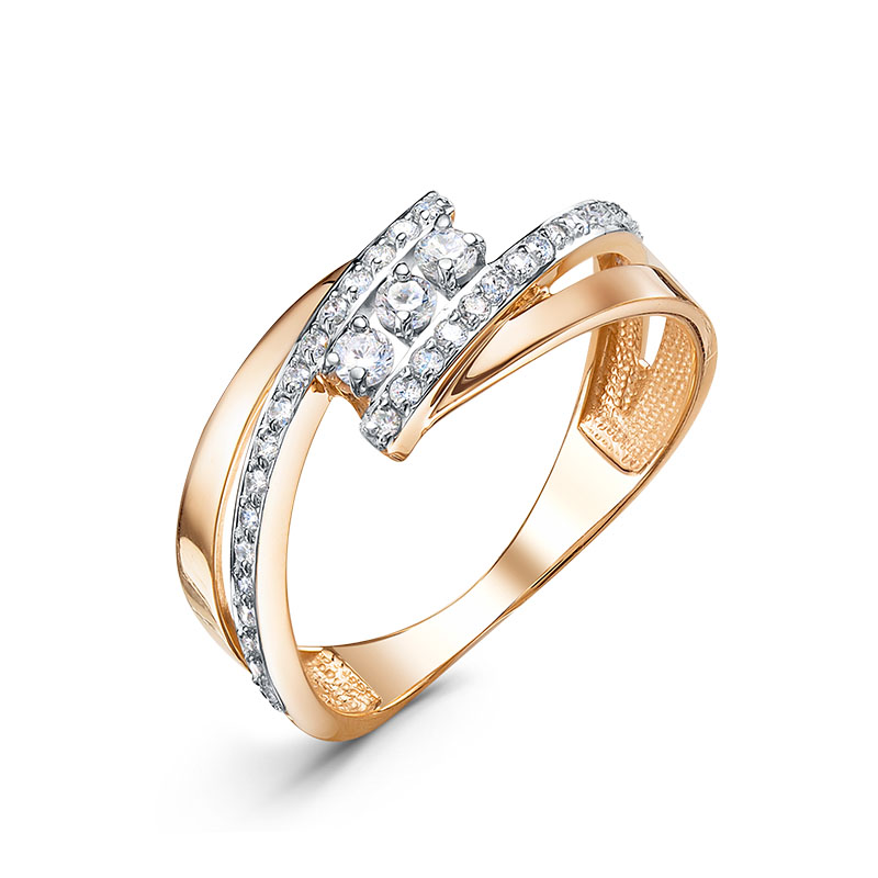 Кольцо из красного золота с фианитами 128077