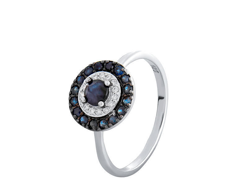 Кольцо из серебра с сапфиром и фианитами