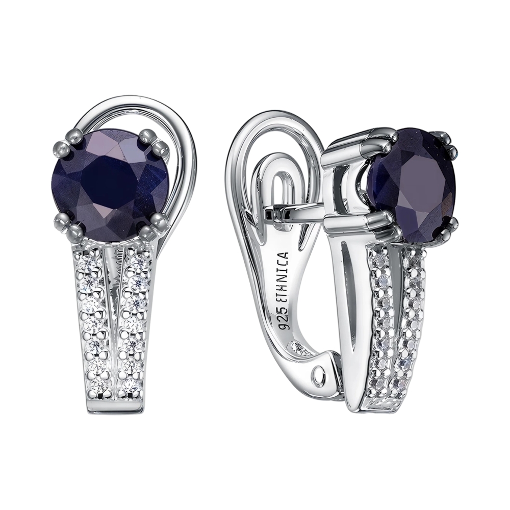 Серьги из серебра с сапфиром и фианитами
