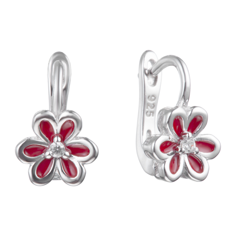 Серьги из серебра с эмалью и фианитами