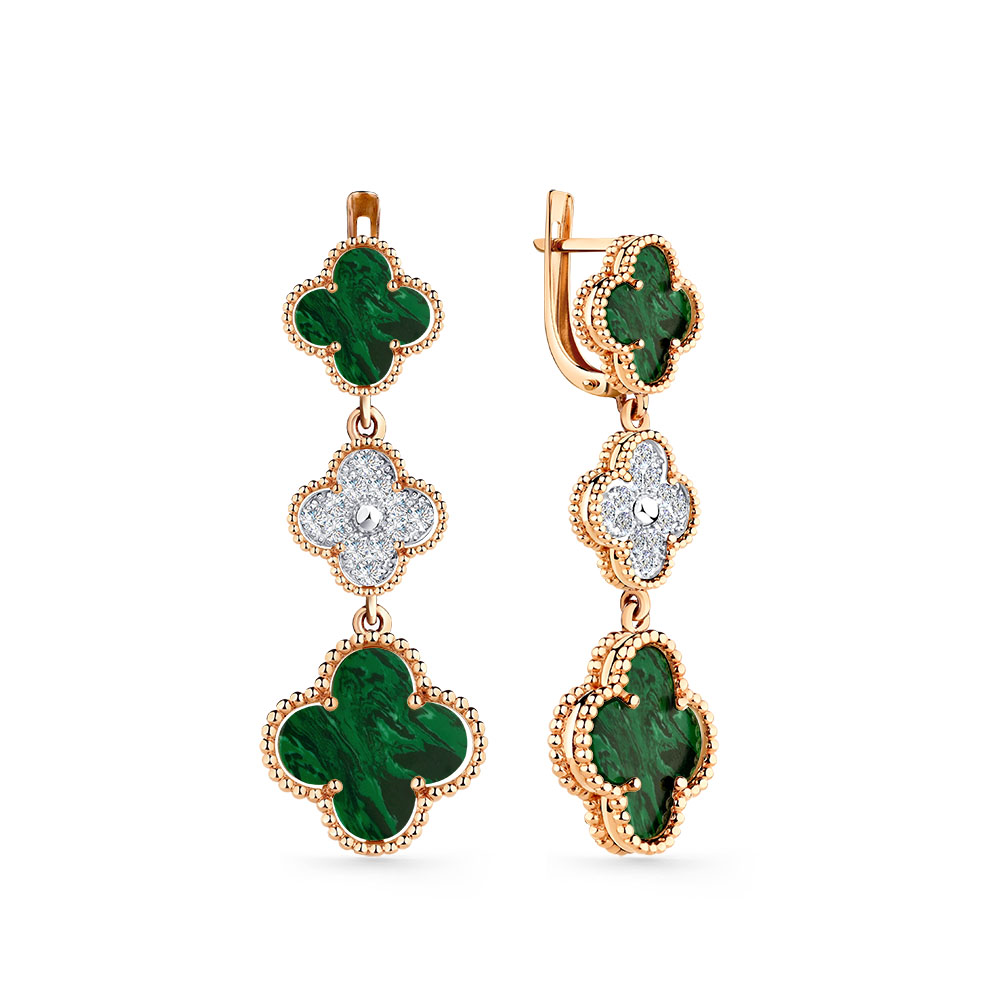 Серьги в красном золоте с малахитами и фианитами