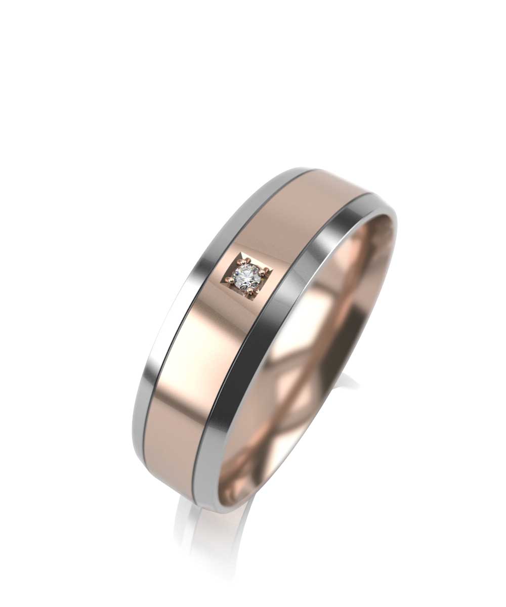 Обручальное кольцо из комбинированного золота с бриллиантом