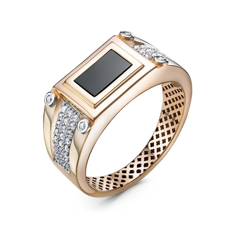 Печатка мужская из красного золота с ониксом и фианитами 130930
