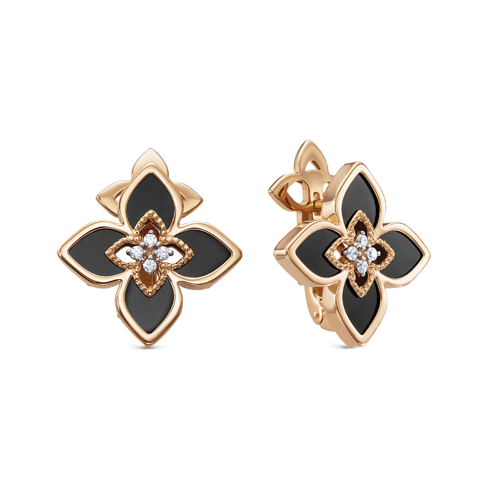 Серьги из красного золота с ониксом и фианитами