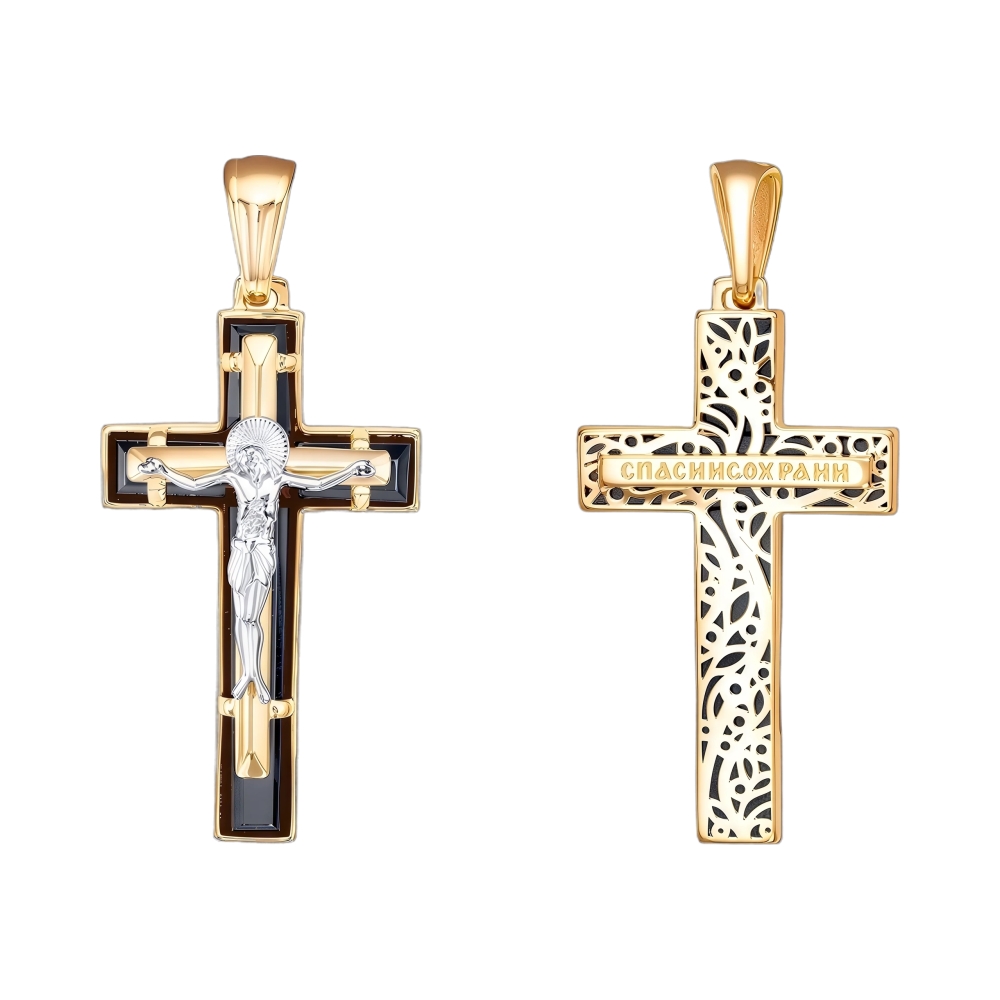Крест из желтого золота с ониксом