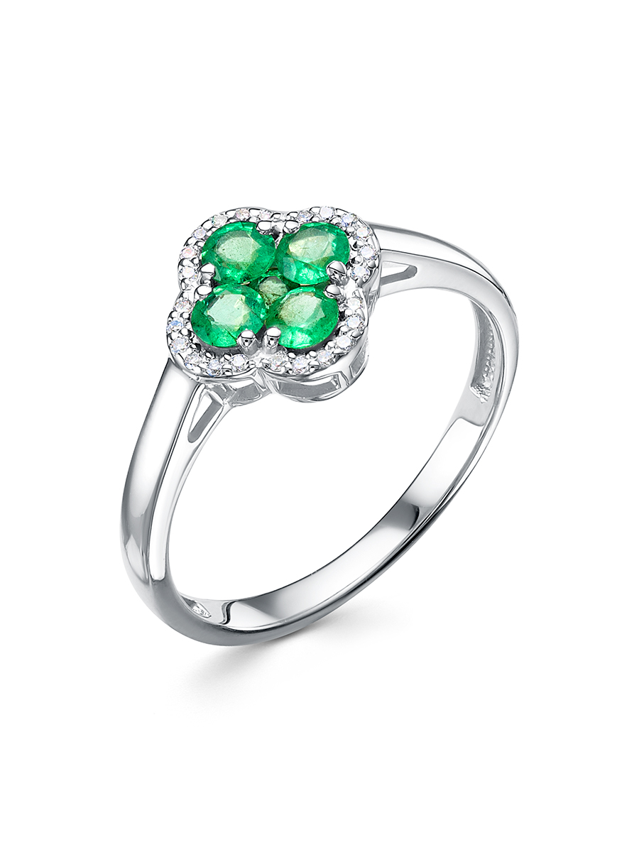 Кольцо из белого золота с изумрудами и бриллиантами 131378