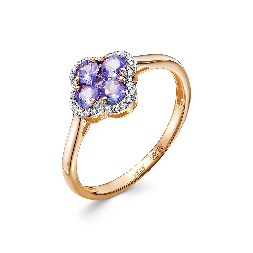 Кольцо из красного золота с танзанитом и бриллиантами 131474