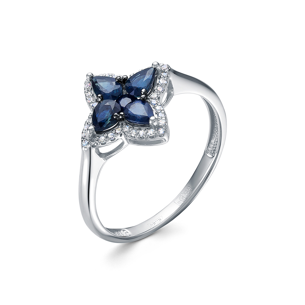 Кольцо из белого золота с сапфиром и бриллиантами